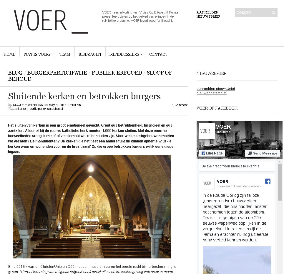 Nicole Roeterdink volgde de leergang Erfgoedfilosofie 2016-2017 bij de ErfgoedAcademie. Als afsluiting schreef zij een essay over sluitende kerken en betrokken burgers.